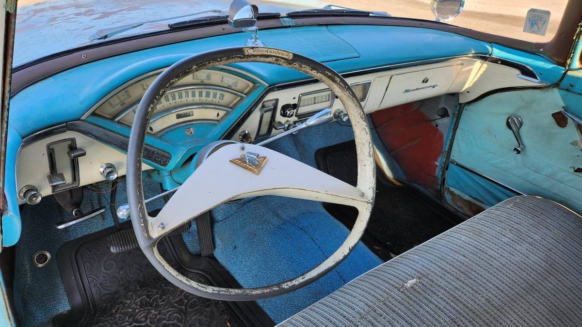 You’re right about that steering wheel. I have a 56 Merc wagon, like this one in the ad, so I’m 100% positive on that. My first thought was Chrysler, but you might be right about a boat wheel. Also the engine air filter is not original. These cars originally had an oil bath type filter. This unit looks like it came from a later 58,59 Ford or Merc.