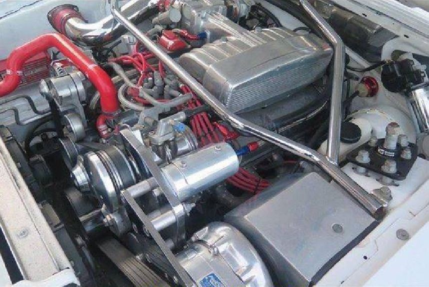 It’s under the hood of the Mustang where things start to get pretty serious. The 302ci V8 originally received the Saleen treatment, but it has recently undergone a full rebuild by another reputable builder. The list of new parts is quite comprehensive, but the result is an engine that pumps out 565hp. This is fed to a Tremec manual transmission, and then to the rear end via a Ford Motorsport aluminum driveshaft. The brakes have also been upgraded from original, while the wheels are 17×8 SVT cobra rims, fitted with new BF Goodrich tires. Once again, details abound under the hood, with polished aluminum and chrome as far as the eye can see.