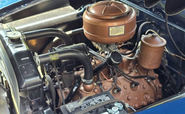 This Ford makes a striking visual impact following a nut-and-bolt rotisserie restoration. It is unclear when this occurred, but the car’s condition suggests it hasn’t clocked many miles since the work ended. The seller claims that the Sheridan Blue paint gracing its panels was reserved exclusively for the drop-top variant, although I can find no conclusive evidence confirming this. Of course, I am one person, and we will undoubtedly have vastly knowledgeable readers who can provide further insight. The panels are as straight as an arrow, with gaps that are tight and consistent. One striking feature is the fluted fender skirts, which add a touch of old-school cool to this classic. The trim is in good order, although I think there might be a slight alignment issue with the back bumper. The Black soft-top is in good condition, the glass is clear, and the 15″ wheels feature correct hubcaps and trim rings.