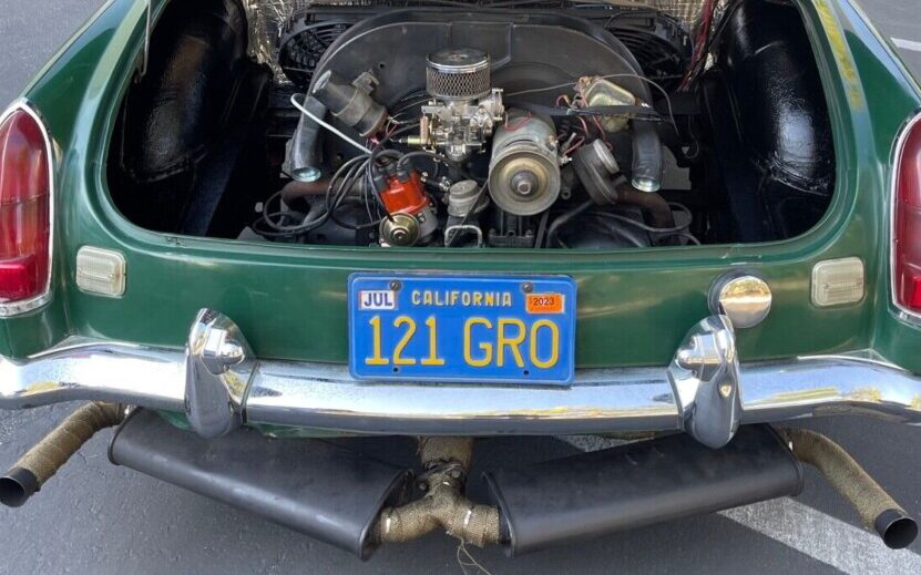 Viewed from the rear, you know something’s up with this MG as the exhaust system clearly gives it away. It turns out that this British gem is no longer resting on its Leyland platform. Nope, this sucker is riding around on a 1967 Volkswagen Beetle (Type I) platform that has been shortened by three and a half inches to accommodate the attachment points on the B’s body. And my logical question is, “why”?