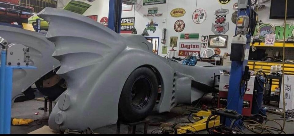 We understand that the Batmobile Keaton used in the 1989 movie and its 1992 sequel was built upon a Chevy Impala chassis with a V8 engine from a 1970s Corvette. This one is following down a similar path with a Caprice station wagon undercarriage and a 5.7-liter crate motor using an automatic transmission (Turbo-Hydramatic?). When the project is complete, supposedly you can title and register it as the Chevrolet the VIN is associated with.
