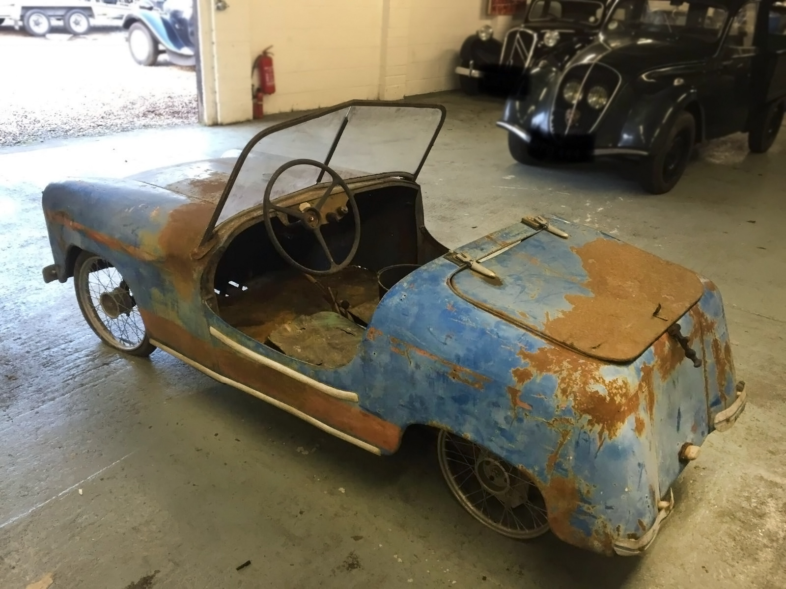 Sharp eye! The Peugeot is an 02 series, 202, 302, 402, ‘34 to ‘48–can’t really tell from the pic. I have a friend restoring a Mochet. It’s quite an adventure. The seller has an interesting collection. I would love to see the rest of his garage.