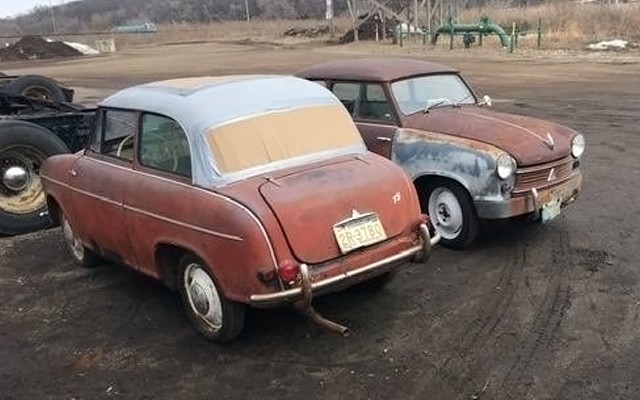I have 3 of these things. They are super cool little cars. Rust is their main problem. The red and white one is a TS as mentioned. They had rear a arm suspension with coil springs whereas the regular 600’s had leaf springs. They also had a more fancy interior, additional trim on the side of the body and roof also. The other 2 are regular 600’s with slider windows. So they are a bit older – maybe 56 or 57? All are US spec cars. If I had the space I’d be on the phone with him right now!