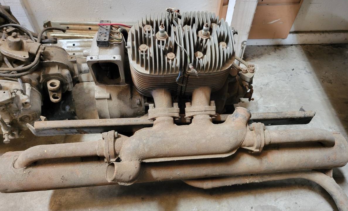 I think the title issue involves getting a title from California because most states won’t title a car unless they have a title from the originating state. Besides that obstacle this is a good deal for a clean relatively rust free vehicle. That engine is missing a lot of cooling tin and other stuff. Hopefully the other engine has it.