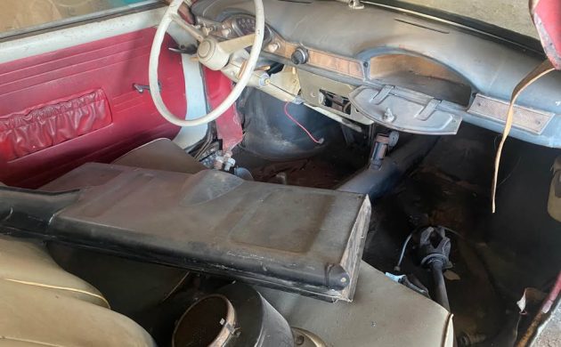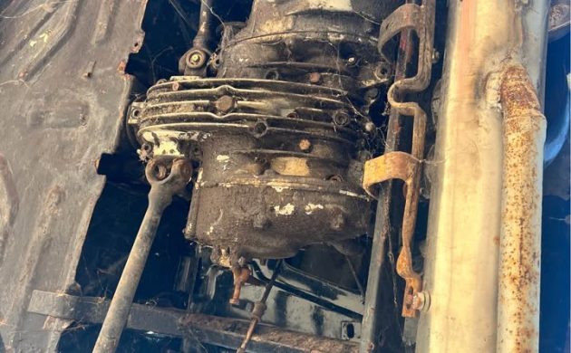 The powerplant – if you can call it that – is Glas’ own air-cooled 245 cc two-cylinder, two-stroke, mounted in the rear. This is the small block; buyers could opt for a 293 or 392 if they stepped up to the TS300 or TS400. A Getrag four-speed electromagnetic pre-selector gearbox was an option, or buyers could default to the base four-speed manual. See this photo? Yup, those front wheels are tucked in – this little guy has swing-axle suspension all the way around. While it has been sitting for decades without attention, the underside isn’t as horrible as we could imagine – a testament to decent storage.