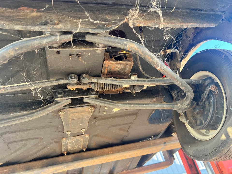 The powerplant – if you can call it that – is Glas’ own air-cooled 245 cc two-cylinder, two-stroke, mounted in the rear. This is the small block; buyers could opt for a 293 or 392 if they stepped up to the TS300 or TS400. A Getrag four-speed electromagnetic pre-selector gearbox was an option, or buyers could default to the base four-speed manual. See this photo? Yup, those front wheels are tucked in – this little guy has swing-axle suspension all the way around. While it has been sitting for decades without attention, the underside isn’t as horrible as we could imagine – a testament to decent storage.
