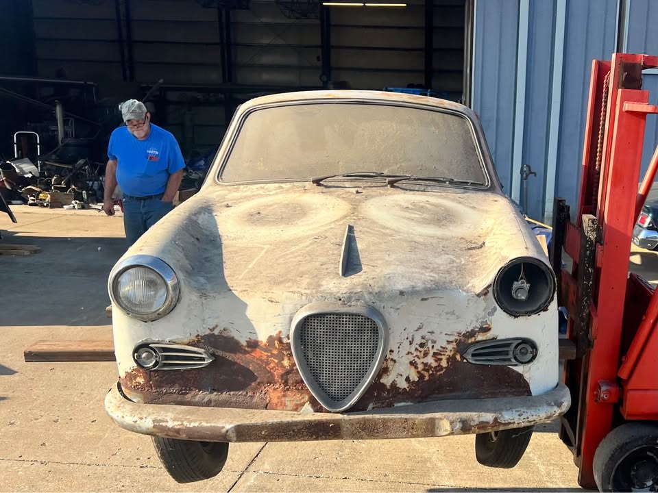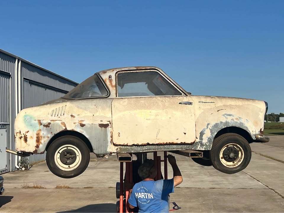 This Goggomobile is hitching a ride on a forklift as the seller sets it up for its photo shoot. The little coupe weighs less than 1000 lbs, and it represents the resurgence of post-war Europe as consumers moved off scooters and began to buy cars. Its predecessor, the T250 sedan, was launched in 1955 – the first microcar offering from the Dingolfing factory of Hans Glas. The “TS” was introduced in 1957, but alas, the “S” does not stand for “sport”, which might imply more oomph than provided by the T250’s 14 hp. No, the output was the same, but buyers could now opt for a coupe body style. Some 285,000 of these tiny troopers and their various siblings were produced, but survivors of any type are hard to find. This 1960 Goggomobile has been hanging out in hangars for most of its life, first in California for several years, then in Kansas City, Missouri for another 20 years. It’s listed for sale here on facebook Marketplace at a price of $6500. Thanks to Zappenduster for the tip!