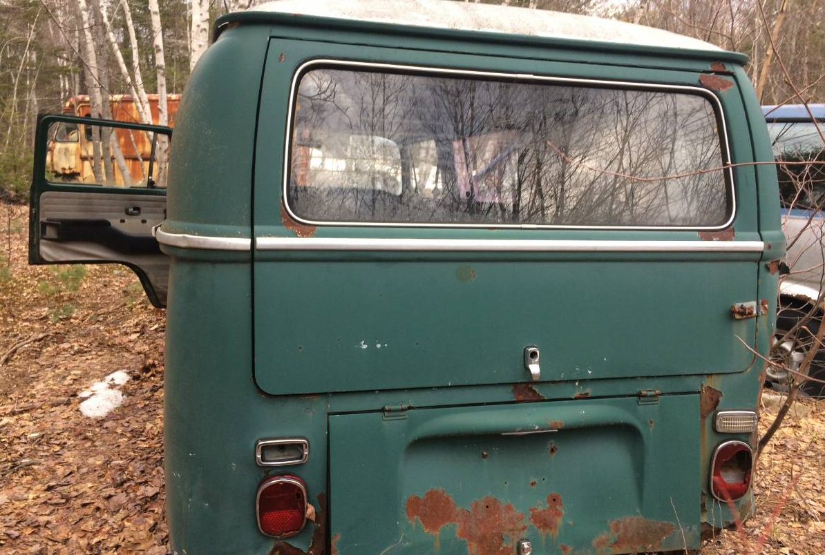 The green exterior and white roof is a pleasing combo, but not much of it will be left if rust repair is attempted. The lone door panel we can see in the photos appears tired, but it’s nice to see this chrome trim strip not painted over. One tail light is shot, as is one reverse lamp, but there’s still plenty of good parts to pick if this Bus and its snow-covered partner aren’t destined for road use. The seller mentions having lots of “…Bug engines/transmission parts,” so there could be a treasure trove in Maine for air-cooled fanatics.