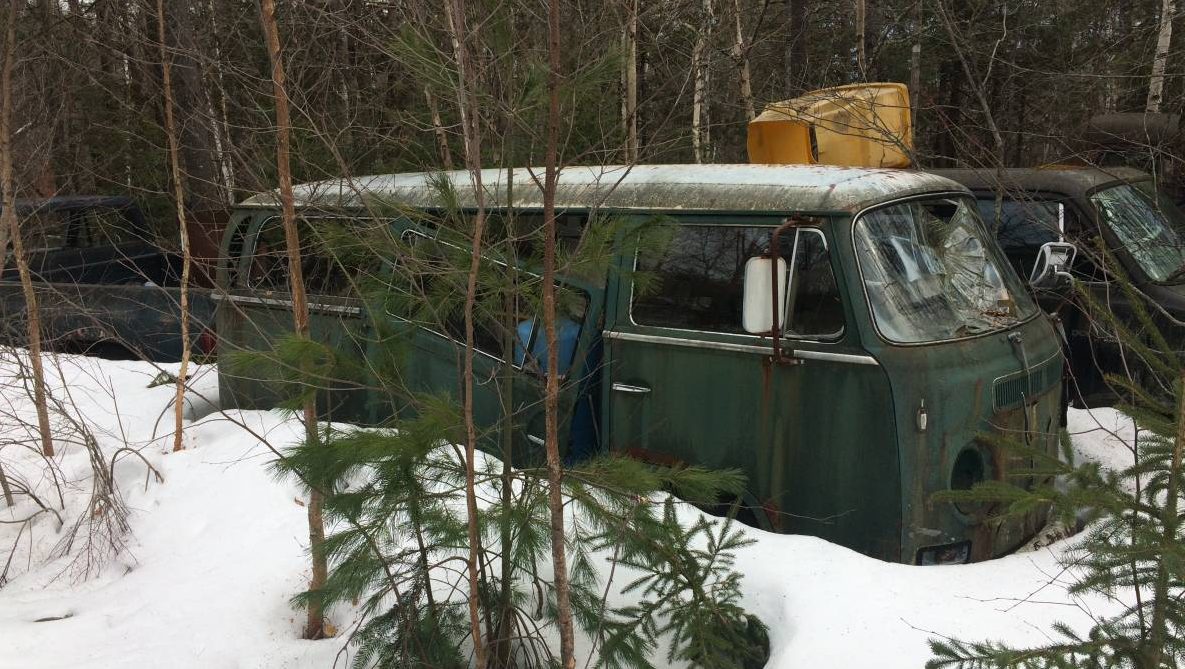 Carmel, Maine is way up there, relatively speaking, directly west of Bangor. There’s still snow on the ground in these photos, and it wouldn’t surprise me if there’s still a coating on the ground. The photos show two Buses, among a few other vehicles. The seller notes they are both 70s-era Buses and the windshields are missing in both of them – but it’s clearly visible here. The floors are “…not too bad,” which I find shocking considering the first photo shows one of the two VWs buried up to its doors.