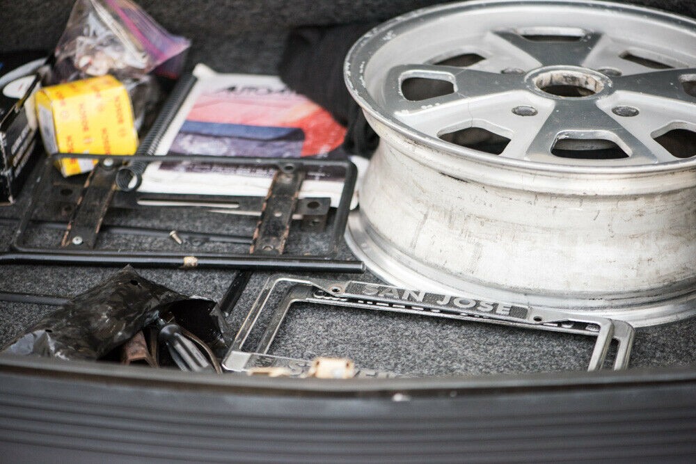 The storage compartment has all sorts of goodies, from a full-size spare wheel to vintage dealer license plate frames and what looks like original tools and manuals. The carpeting in the trunk (before all this stuff was placed in there for the photo shoot) looks spotless, and aside from some of the undercoating failing in the wheel wells, there are relatively few cosmetic flaws to cite. 914s aren’t getting any cheaper; is now a good time to buy the nicest one you can find?