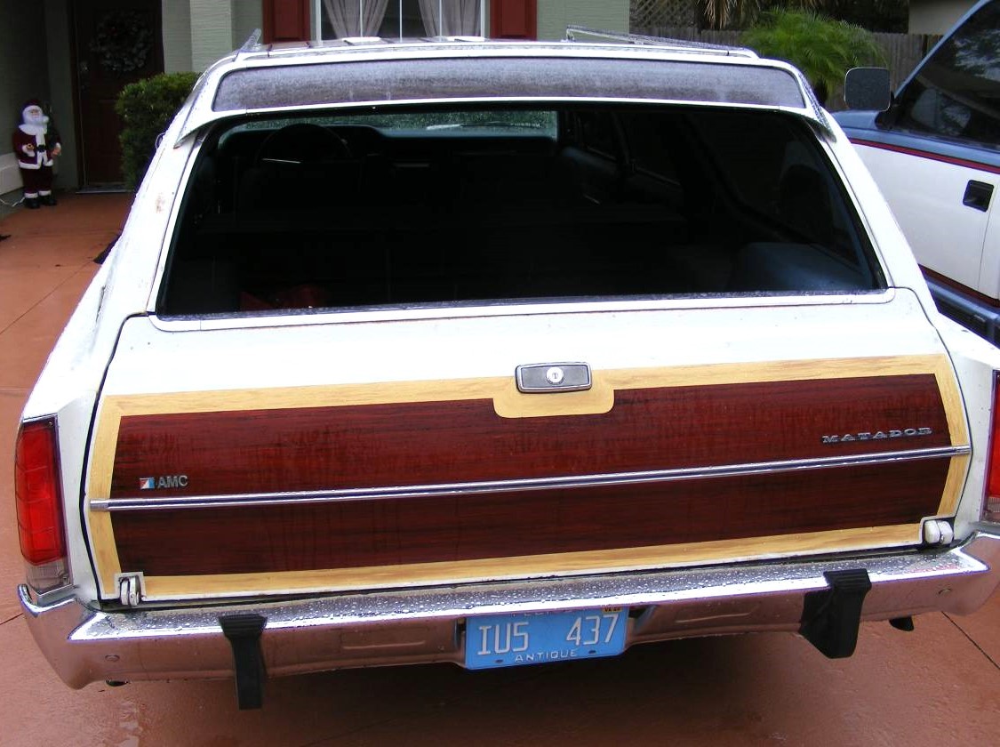 Definitely NOT what the seller is claiming. Woodgrain is a modern wrap, and the border molding is a part of that wrap instead of being separate. Drivers side front fender looks deformed in the wheel arch and at the lower rear section of the fender it seems to be pushed in at the wheel arch. I am willing to bet there is more bondo than steel under that cheap paint job. Also, New Jersey is a state known for cars rusting, and believe it or not, Florida cars rust as well because of the high humidity and the salt in the air.