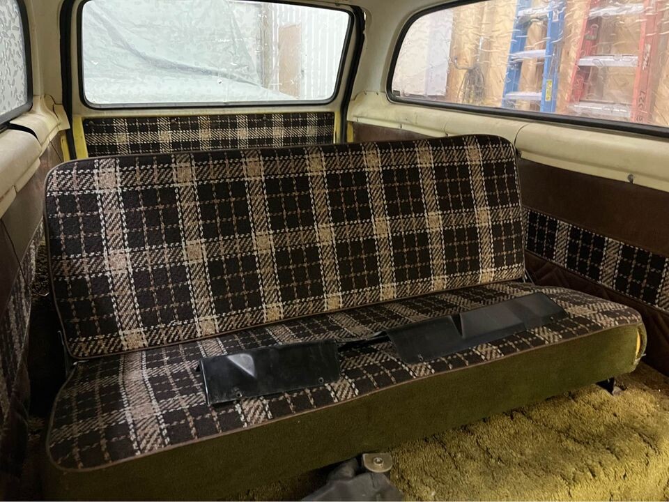 The Midas trim was limited to just under 300 models, from what I’ve found, and I’m guessing the bulk of them came with the 345 V8. I can’t believe the elusive combination of the Midas kit and the Nissan-sourced turbo diesel engine was a common combination. The plaid trim inside was the icing on the proverbial cake for these trucks, and the seller confirms he does have the matching front buckets to the rear bench seat. Hopefully, the front upholstery is in the same sort of condition.