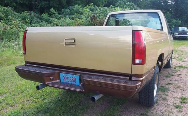 I’m not sure if I’ve seen bumpers and the grille painted like this, but I like it. A lot. No, I love it. The boy-racer straight exhaust pipes, not so much, I’d knock that back a bit, but that’s just me. Again, it’s more than just looks; I tend to hit my shins on things like that, so that wouldn’t work at all for me. The seller is listing this gorgeous truck for a friend, and they listed a phone number to give a jingle for more info. Disclaimer: I took most of the phone number out of the “original listing” link, so six months from now, he’s not getting calls. Inside the bed looks fantastic. It appears to have been lined and then sprayed body color, or something similar. I don’t know how this truck could look any nicer than it does. I’d prefer it to have its factory badges, but that’s just me. I’m not a big de-badged guy.