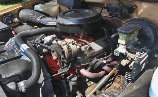 The clean engine (it keeps getting better and better) is a “mild build” 350-cu.in. OHV V8, which would have had 210 horsepower and 300 lb-ft of torque when new. We don’t know its rating with the mild build, but it’s backed by a column-shifted automatic sending power to the rear wheels. They say it has 2,000 miles on the “mild built” engine, and it needs nothing. Hagerty’s at $12,900 for a #3 good-condition truck, so this looks like a bargain. Any thoughts on this two-tone truck?