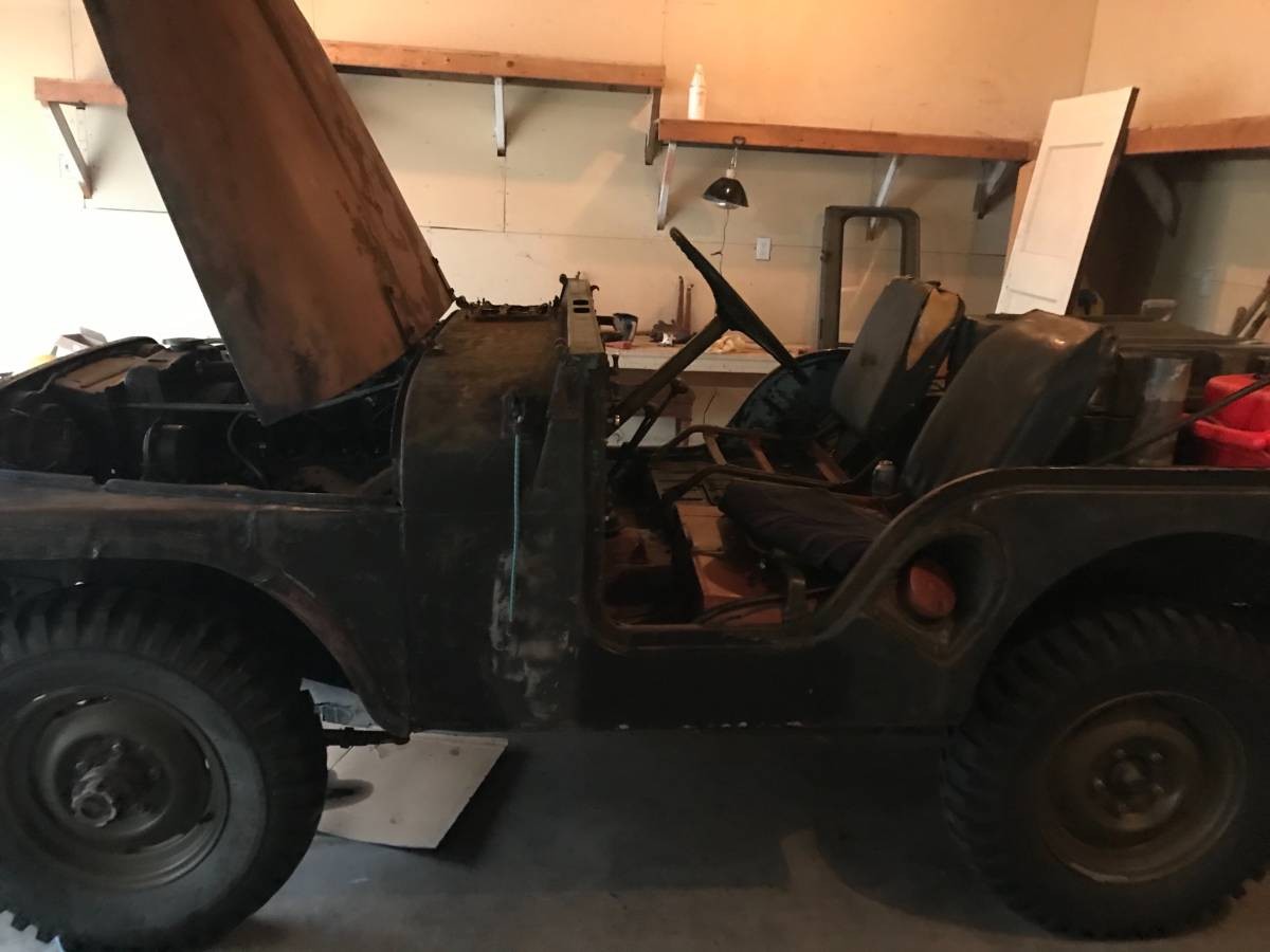 Then there’s the random photo of what looks like a dad and his kids out for a drive. Is this Jeep a runner, at least to the point that it can reliably used? Hard to tell, because all of the other photos show it either on a trailer or in this garage. Another curious detail is a black-and-white photo of a very nicely preserved M38A1 parked at the end of a driveway with a 1970s-era Cadillac parked nearby – is this what this Jeep once looked like before it was abandoned? If so, it was a very nice example with a full canvas roof and its military identification numbers still visible on the hood. There has to be a story here, at least more than is being told in the listing.