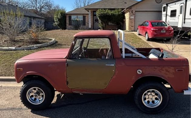 This 1970 International Harvester Scout 800A is located in central Texas in the town of Harker Heights. It is listed here on Facebook Marketplace for $12,500. The listing has been up for about a week. There is not much of a description in the ad but it appears to be a running example that needs paint, grill and a front bumper. The rear bed is fitted with an aftermarket roll bar and a rear bench seat for the kids. This Scout 800A is riding on chrome wheels and the tires look like they are fairly new.