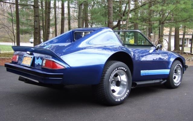 I usually frown on kit cars but I think this one is pretty trick. With that hot engine it would get a period Camaro off the line and at the 1/8 mile. It probably only weighs 1500 pounds with an estimated 150 hp.