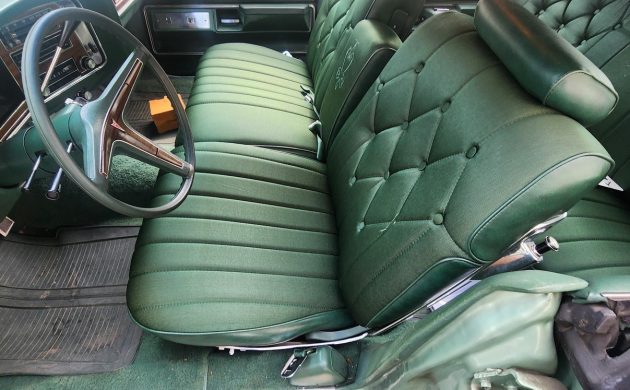 Under that long, mint green metallic hood is the Grand Ville’s power plant: a 455-cubic-inch V8 with 44,890 original miles. It’s mated to a three-speed Turbo Hydra-Matic automatic transmission. Yes, the Grand Ville was aptly named and definitely made a statement in GM’s now crowded six-passenger luxury car field. And at a length of 226.3,” it was within an inch or so of a Cadillac Sedan DeVille. This is one of the nicest, low-mileage ’73 Grand Ville four-door hardtops we’ve seen here on Barn Finds. If you’re looking for one of the best survivors out there in Time Capsule Land, I’d say look no further.