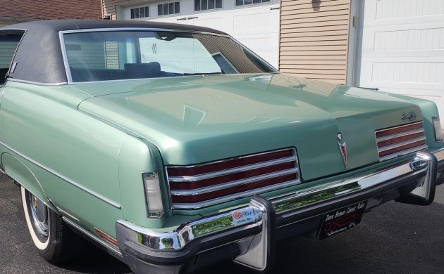 I’d like to know what this big Pontiac has been doing the last 52 years and its story, but based on the photos, it’s obviously been garage kept and pampered. The mint green paint (I believe it’s called Slate Green) looks shiny and presentable, the black vinyl top is in very good condition as are the bumpers, grille, rubber, glass, trim, and Grand Ville badging. With the fender skirts and Caddy-like fully wheel covers, this is one impressive Pontiac. Although the front styling on these luxury Pontiacs is “pleasant”, I always liked the rear styling better. It just has a hint of Grand Prix sportiness in my eyes.