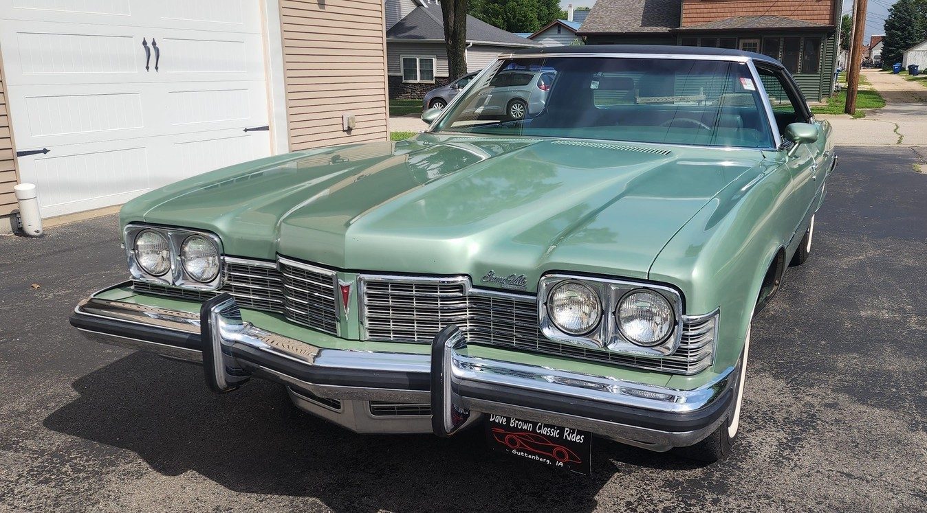 Under that long, mint green metallic hood is the Grand Ville’s power plant: a 455-cubic-inch V8 with 44,890 original miles. It’s mated to a three-speed Turbo Hydra-Matic automatic transmission. Yes, the Grand Ville was aptly named and definitely made a statement in GM’s now crowded six-passenger luxury car field. And at a length of 226.3,” it was within an inch or so of a Cadillac Sedan DeVille. This is one of the nicest, low-mileage ’73 Grand Ville four-door hardtops we’ve seen here on Barn Finds. If you’re looking for one of the best survivors out there in Time Capsule Land, I’d say look no further.