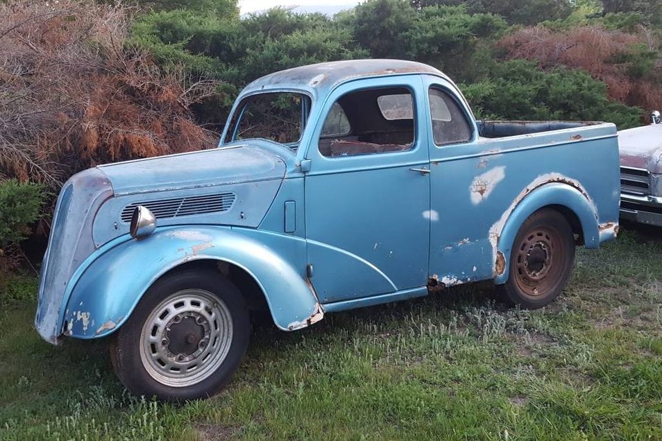 Before we delve further into this classic Ford, it’s time for a bit of patriotic Australian flag-waving. The concept of the Coupe Utility actually emerged Down Under in 1934 and came from Ford Australia. I’m not for one moment claiming that we invented the pickup, but what a gentleman by the name of Lew Brandt did was develop a vehicle where the pickup bed was fully integrated into the Coupe body, a design which eventually spawned vehicles like the Ranchero, the El Camino, and the Ford Popular Ute. The fact that this is a Popular rather than an Anglia is to the next owner’s advantage. Both the Anglia and the Popular were available with the 1,172cc side-valve engine. However, the engine in the Popular produced a staggering 200% more power than the one in the Anglia. Of course, that all sounds impressive right up until the point where you realize that the engine in the Popular produces a staggering 30hp. This is sent to the rear wheels via a 3-speed manual transmission. We don’t get any indication regarding the mechanical state of the car, but the shifter poking out of the floor does indicate that there is at least a transmission hiding under there. The interior of a Popular Ute is a pretty spartan place, and it looks like the door trims and some of the handles are missing. This shouldn’t be a problem, because I know that these items are available in the UK, and I’d be willing to bet that you might even find at least some of them in the US. The seat will also need a new cover, but one of those can be made by a decent upholsterer.