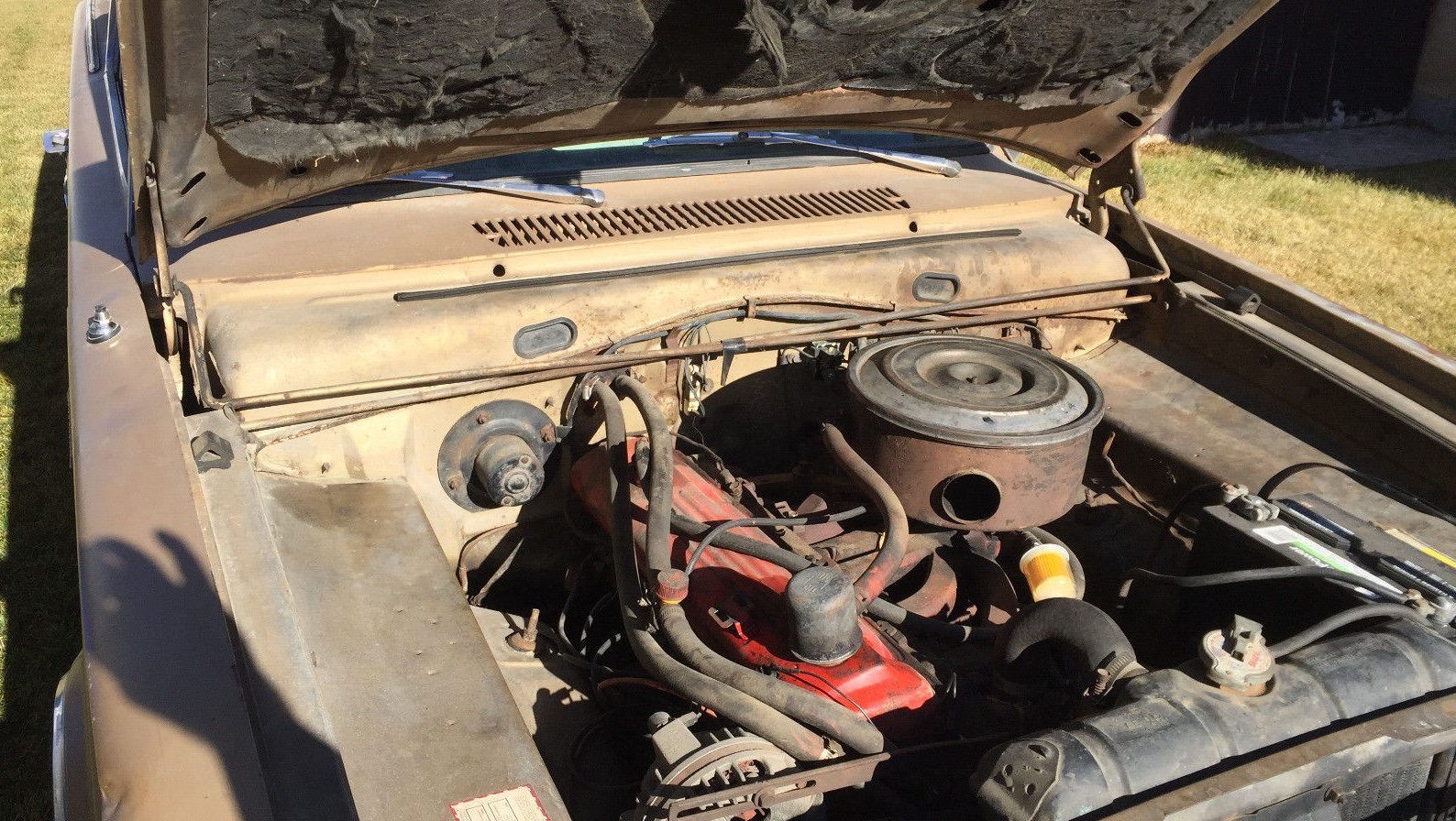 The interior isn’t bad either, with decent door panels, a cracked-but-complete dash, original steering wheel and blessedly no obnoxious 90s stereo in the dash. The seat covers are likely hiding some damaged upholstery, which somehow seems better than sitting on filthy sheepskins. The seller has made some improvements inside and out, including: “New master cylinder, new fuel line & sending unit, gauges operational. Also comes with new headliner in box.”