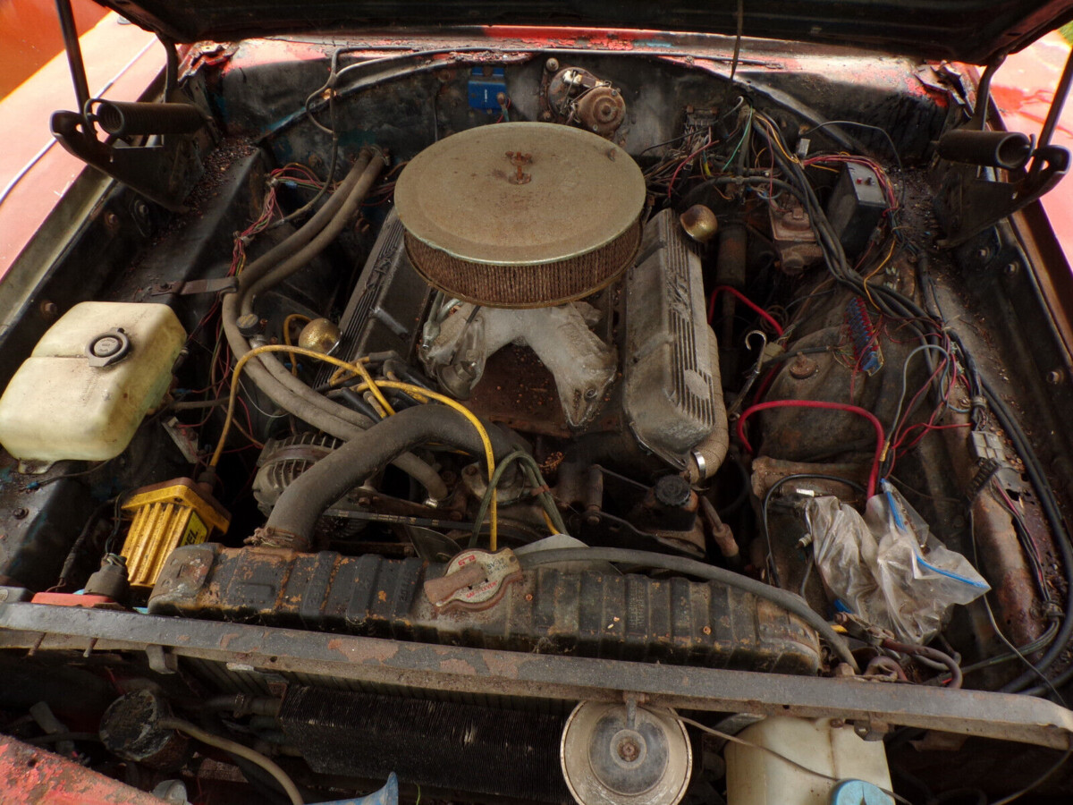 The engine in this car is not original. It is a 383 cu. in. V8 with a reverse manual valve body, a four-barrel carburetor, headers, electronic ignition, an electric fuel pump, and a new oil pump. The engine has two bent pushrods and the seller believes most of the valves are stuck. The engine configuration and damage make me think someone constructed it to go fast – perhaps for racing. (There are more clues once we get to the interior.) While the engine report isn’t great, there’s better news in the VIN: this car came from the factory with a 440 cu. in. V8, good for 375 bhp.