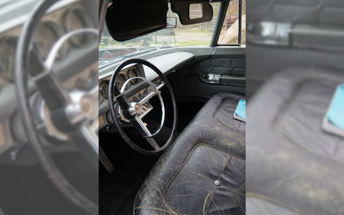 The interior looks good and well-used like a 62-year-old car should look. I’m glad that they kept it original, or mostly original. Is that light gray trim piece new?