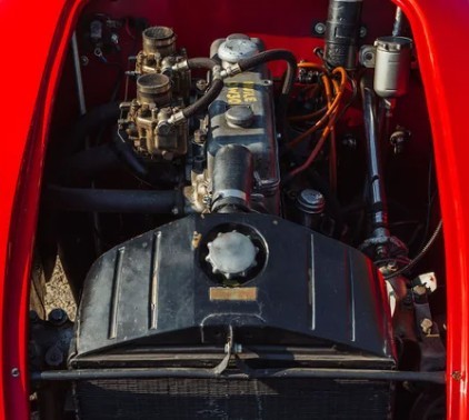 Stanguellini preceded Ferrari by a few years on the track, fielding modified Alfas and Maseratis. The company found its niche tuning FIAT engines, then making and installing performance parts. This engine is based on an 1100 inline-four, augmented by Stanguellini’s aluminum head and dual Webers. Output is approximately 60 hp. While that figure sounds skimpy, the lightweight tube chassis was designed in-house and the diminutive bodies were crafted of aluminum by local carrozzeria. Fanatical attention to “dieting” the car even further before delivery could result in speeds of 100 mph. But mind those corners: your brakes are drums all around. This car is said to be in good working order after an extensive restoration by its long-time owners.