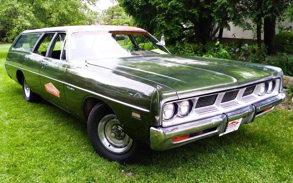This reminds me of the ’73 Dodge Polara squad car I drove when I was still on the job. It had 107,000 miles on it and the suspension was shot. I was working midnights and got a call of an armed robbery in progress, went over railroad tracks enroute, and took out the oil pan. I love station wagons and Mopars. I would return this to its original condition, including the 318.