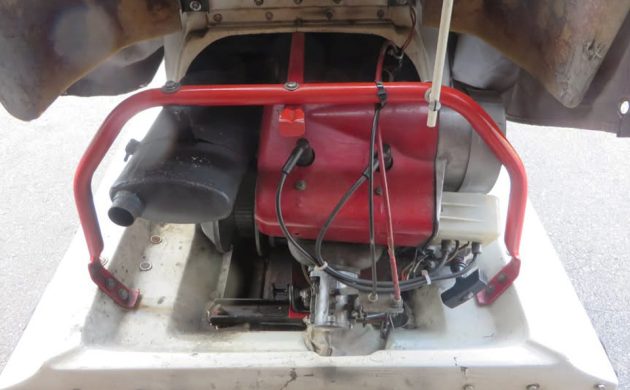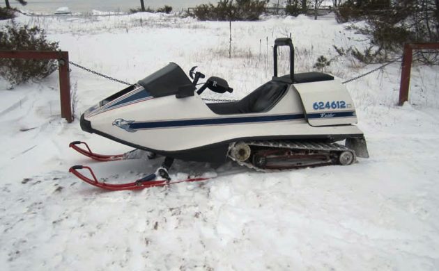 The engine is a CCW (Canadian Curtiss-Wright) 339-cc twin with 28 horsepower, and despite the lack of other photos, a big round of applause to the seller for lifting up the rear engine cover to show us the power behind this twin-track sled. They say the engine is all original, but they’ve upgraded the factory plastic gas tank for an aluminum one. They don’t mention the other modifications, however. Would any of you pay $2,000 (U.S.) for a vintage snowmobile?