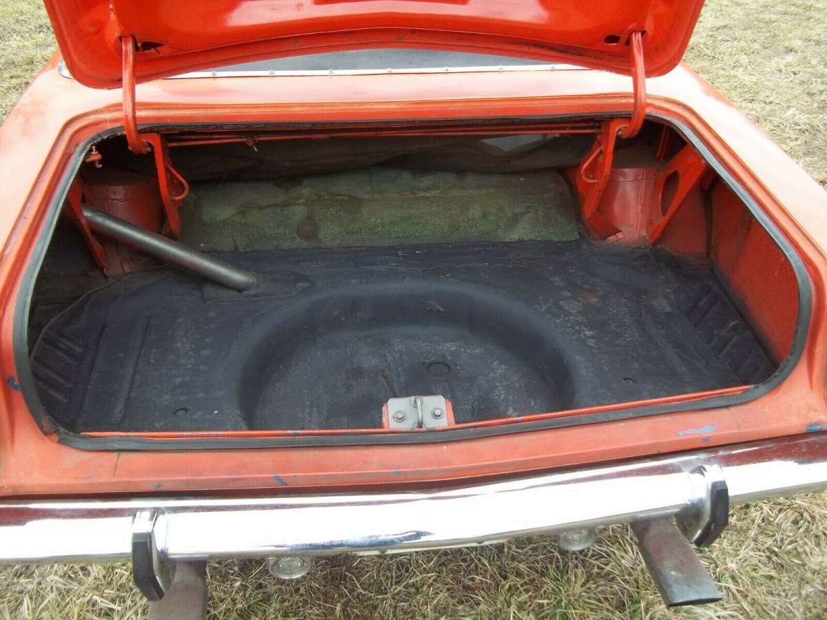 This Barracuda has seen a few major changes in its lifetime. First, it left the factory with a 4-speed manual, but someone apparently didn’t like changing gears and dropped a 727 TorqueFlite from 1972 in there in its place. The seller is throwing in an A-833 transmission, bell housing, shifter, linkage and pedals should the buyer wish to turn things around. Second the 340 isn’t numbers-matching as one from 1971 is sitting under the hood now. Third, the original B7 blue paint job was replaced by orange about 15 years ago and is starting to get a little tired. And last, the fender wells were cut to accommodate some headers, but a new set of inners are also coming with the deal if you want to change that, too.