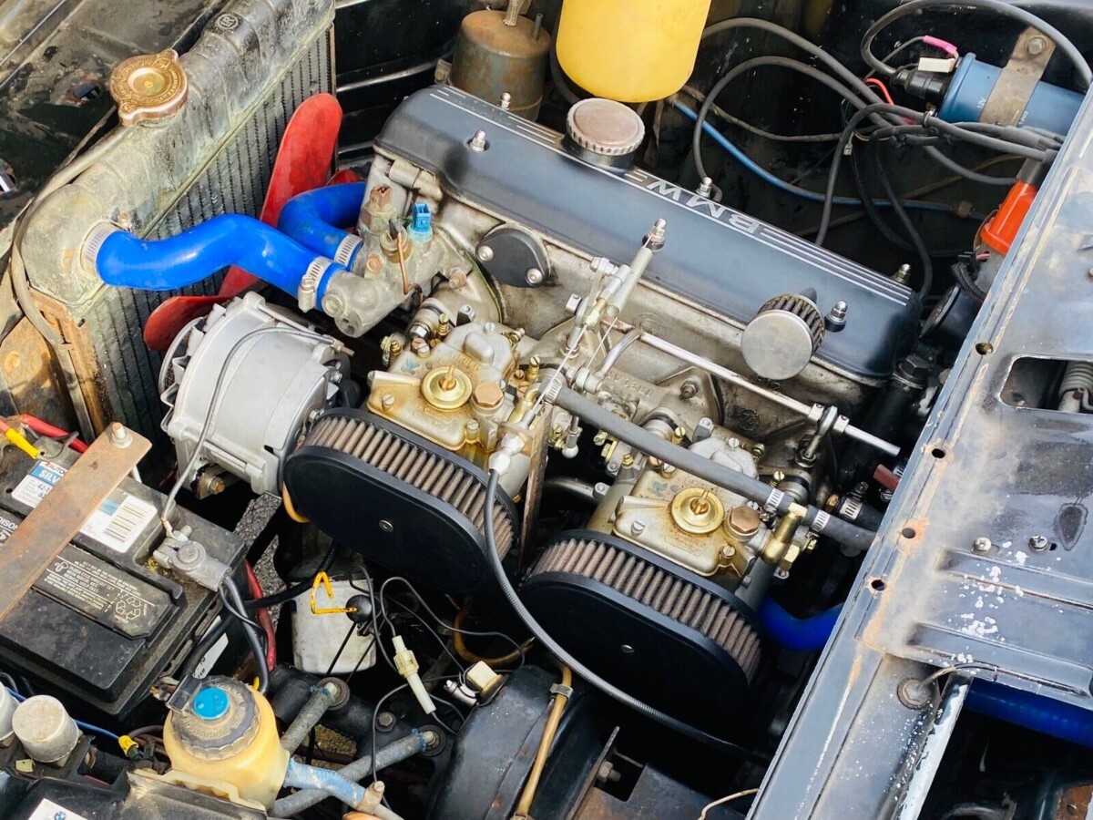 Currently at $6,300 reserve not met. They do list it as “repainted in black”, but do not mention the original color. Appears to be solid, but they omit the important trunk and under pictures. No mention of what transmission is currently in it. Could be a fun car, and project. Great memories of BMW 2002 in hot-rodded form.
