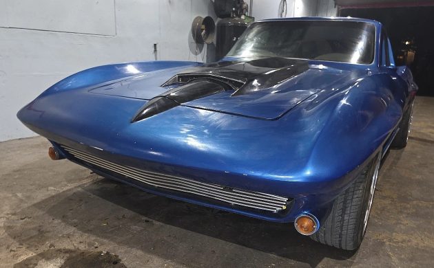 Curvette, thanks for your tip on this Corvette! The story the seller was told is that this one was stolen in the seventies, then not recovered until the nineties. Whatever happened to the car between the lost and found period remains unknown, but what’s certain is that the original platform is long gone, and the ’63 body is now riding on the chassis of a 1996 Corvette. Considering all this one’s been through, some of the fiberglass still appears to be OK, although the rear windows have been flush-mounted. However, minor body damage is mentioned in a few areas, so it’s nowhere near perfect. Several custom touches have also been added, including shaved door handles and the headlights being relocated.