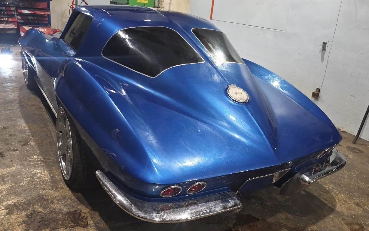 I believe the body is completely aftermarket. I doubt this was ever a ’63 Corvette coupe built by GM.