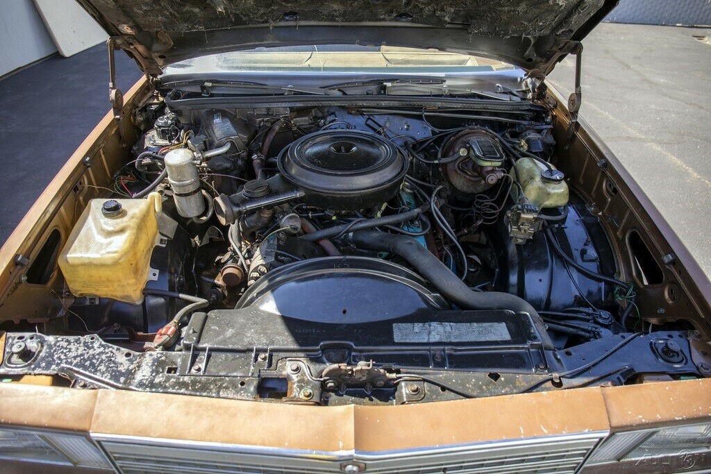 For a car that looks untouched, and the closer I look, I think that someone tried to get the car ready for engine work. The hose for the air cleaner is gone, and so are the a/c compressor and lines. That could all be moved out of the way to indeed pull the engine, but they are gone. The rest of the car looks untouched, but something’s hinky in the engine compartment!. Possibly realization of cost and or experience to do such a chore.