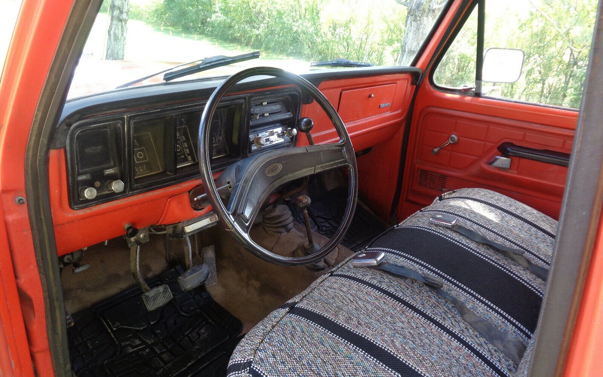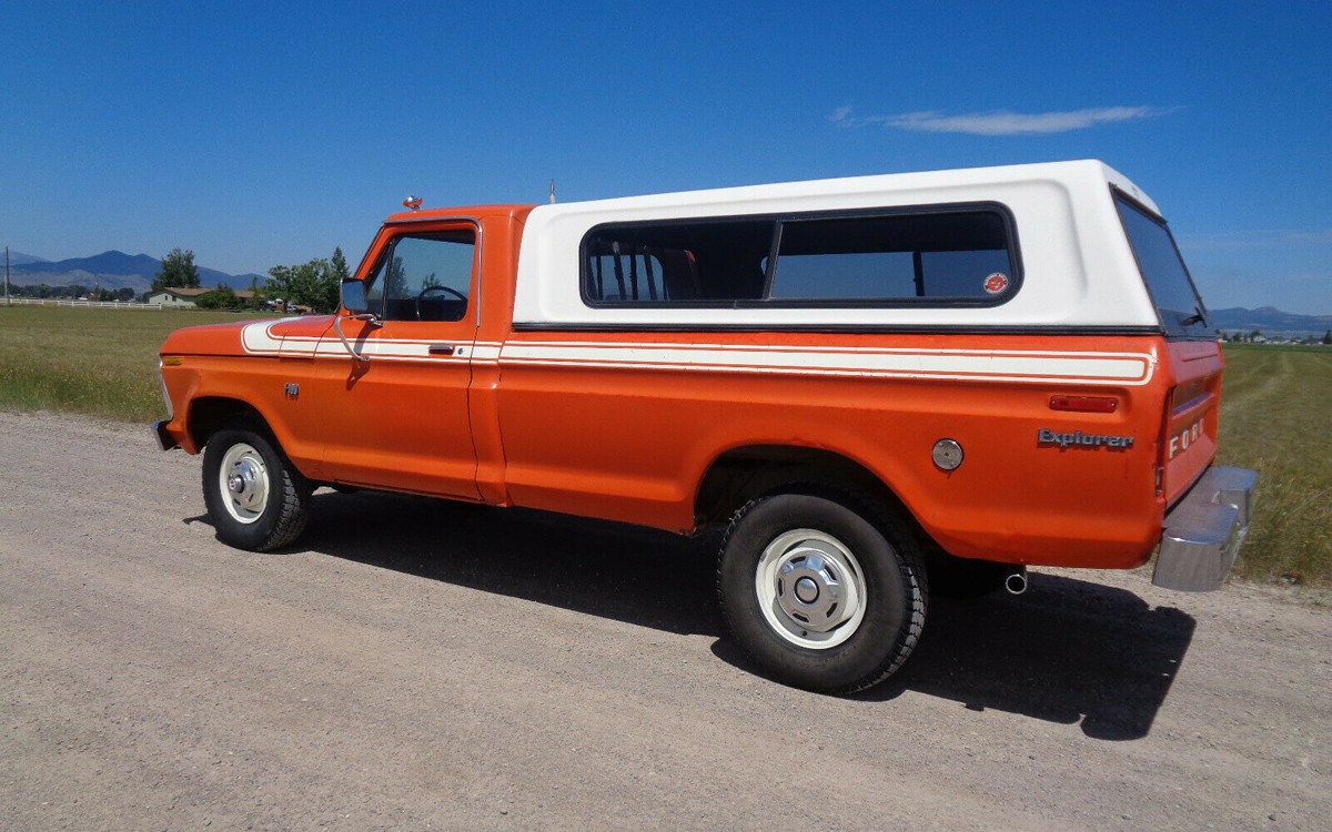 There’s something about an orange Ford pickup that gets to me. We had one brand new in 1969 to drag around a big Winnebago pickup camper and I’ve loved them ever since. This orange survivor 1975 Ford F-100 4×4 is located in beautiful Fort William Henry Harrison, Montana – originally Fort Benjamin Harrison, Montana, now known as Fort Harrison, MT – just three miles west of the capital city of Helena. It can be found here on eBay with bids of only $2,900 so far and no reserve! There is only a day left so it’s selling to the high bidder.