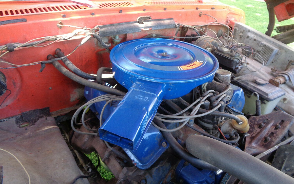 The engine looks great but it also needs some work in order to be a reliable puller for this truck. This is a replacement 360 cubic-inch V8 as the original was replaced around 64,000 miles ago. You can hear it run in the YouTube video and it sounds great. They say that it could use a little sorting, even though they had a shop go through the heads and rebuild the carb and it starts like a charm in any weather and it sure sounds great with those glasspacks. Would you restore this truck or keep it maintained and drive it as it looks now?