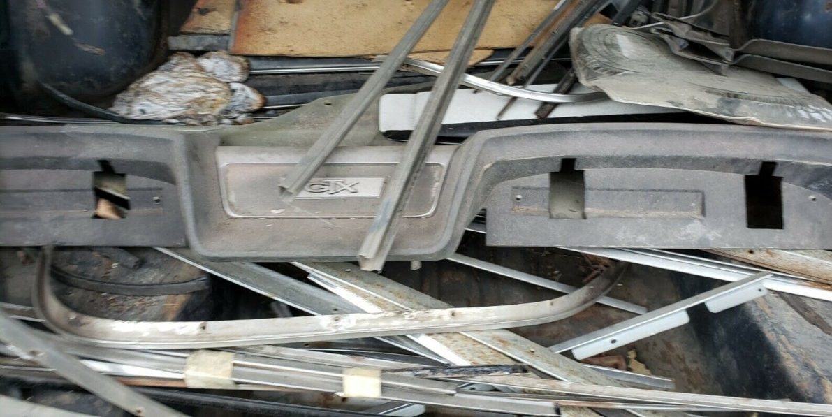 Here’s a note of caution, “Car needs total restoration and has 85% of parts.” OK, which 85% and what are the 15% that are missing? Well dive right in, there is a treasure trove of “stuff” in the trunk. The body seems to be in reasonably good shape. There is a small dent in the passenger side fender and in the front bumper too but no obvious infestation of corrosion and the body panels align well. The chrome is a bit weak and the GTX hood scoops are missing (in the trunk perhaps?) but the serious, necessary parts all seem to be there.