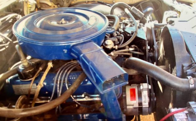 Parchment vinyl upholstery is how the interior of this drop top sits, and it provides a nice accompaniment to the Sunlit Gold exterior hue. From what’s revealed, the bench seat environment is in very nice condition and doesn’t appear to need any attention. I have to believe this interior shade will be much kinder to parking one’s derriere on a hot summer, top-down day. And speaking of that, I would suggest that this Ford’s innards haven’t been overexposed to the sun – it all still looks fresh. The only thing that I would change is those parchment, or off-white, floor mats – they’re gonna’ look messy pretty quickly.