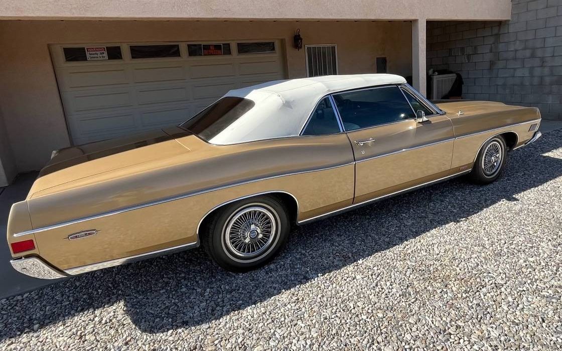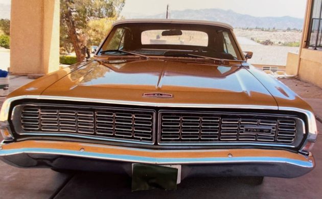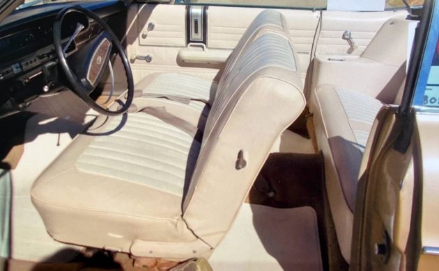 Being an XL means it’s the “sporty” full-size Ford, available in two-door fastback or convertible body styles. It’s still very similar to the Galaxie 500 with all vinyl upholstery, concealed headlights, and XL badging being the most obvious differences. As for popularity, Ford produced about 56K XLs in ’68, and 6K of that total were the drop-top variety. The Galaxie 500 convertible was a bit more robust volume-wise, with almost 12K copies seeing the light of day. According to the seller, the finish on this Ford is Code Y Sunlit Gold, and the lines of this car wear it beautifully. The entire exterior is in nice shape with no indication of fade, nicks, or chips marring the finish, while there’s no rust in sight or misaligned body panels. The trim is all present and accounted for, the chrome plating is still strong, and the folding top, from what can be spied, shows as being sound. While not a fan of wire wheel covers, they work very well on this big, stylish Ford.