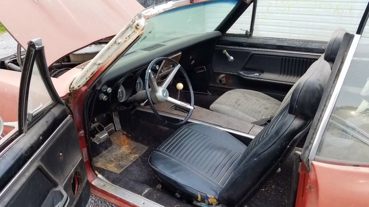 I love a good ol’ F-bird that can be driven onto the trailer! This is the sort of vehicle I would find at the back of the tote-the-note car lots when looking for a cool ride in my college days. I had been sitting in the passenger seat of my father’s two 67 Firebirds and three 69 Firebirds and by the early 80s was ready to start my own project on the cheap. Back then, numbers matching was never uttered, or the phrase “factory air conditioned car” nor did anyone in my peer group care that a Camaro spoiler was put on the trunklid of a beater convertible like this. It is tough call (meticulously restore or not) but unless the doors fall off as you open them this car could be slowly improved while driving it and sorting out the cosmetic issues. But not if it splits in half…