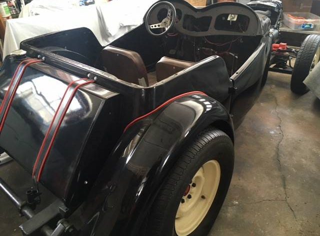 The seller notes there are no front fenders, which makes this MG TD more brawny than it already is. The body’s been painted already and still looks quite good, despite a number of years likely passing since it was freshened up. The interior features a custom aluminum dash and three-spoke sport steering wheel. You have to love the huge rear tires hiding out in those gorgeous fenders – someone certainly had a vision for this project before it stalled.