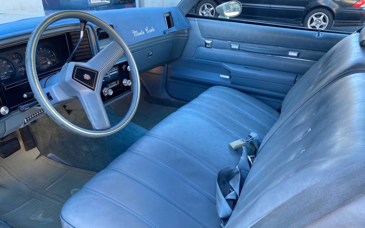 My Mother bought a 1978 Monte Carlo brand new. Baby blue with matching baby blue mouse fur interior, with split bench seat and V-8. First car that she owned with a/c. I think it cost less than $8,000. This seller is really dreaming.