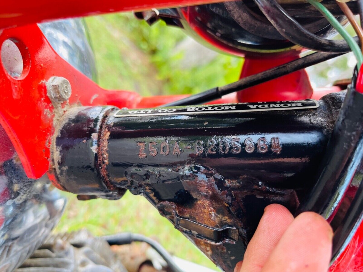 Looks like it has a CT-70 rear wheel. Interesting. I had a CT-70. It was great. My Dad moved to Colorado and took it with him. He road that silly thing 20K miles. The 50’s were just too small — but very cool.