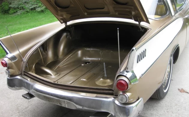 Sorry, I’m not buying that this is the correct 1957 Studebaker color. There are probably more Tiara Gold ’57 Golden Hawks still around than any other color, and Tiara Gold was a true gold. This is a light brown metallic, not Tiara Gold.
