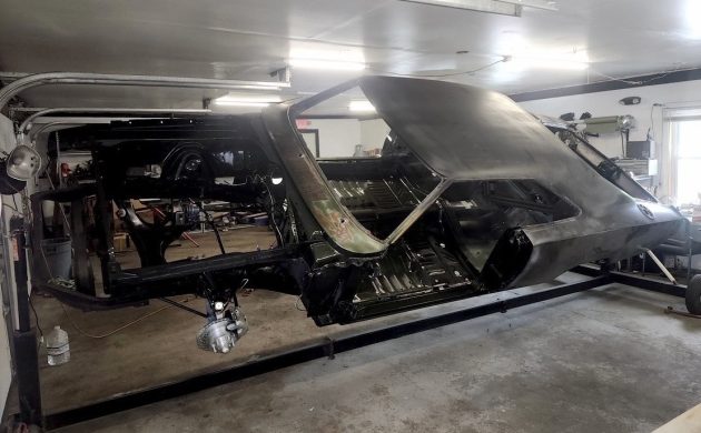 This one’s said to be just off the rotisserie, with the above photo showing how the car appeared during this important restoration step. We don’t get to view any pictures of what the Charger looked like before the project began, nor is any information provided regarding what type of bodywork may have taken place, but the seller does confirm that all the body numbers match. Whatever actions were taken seem to be of high quality, and it’s a plus to find that the suspension has also been redone.