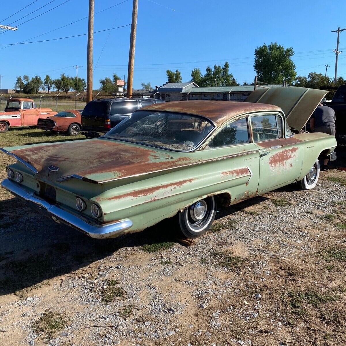 Although much the same, I think the 60 was a vast improvement over the 59 monstrosity. When it comes to these, I actually prefer a post over a hardtop. I wouldn’t mind having it, but that’s just too much money. She’s rusty and crusty.