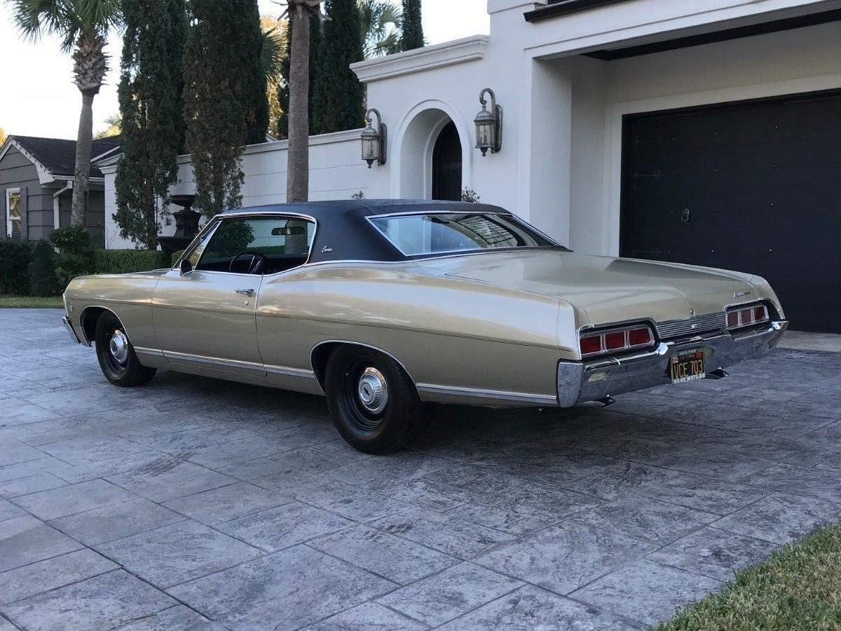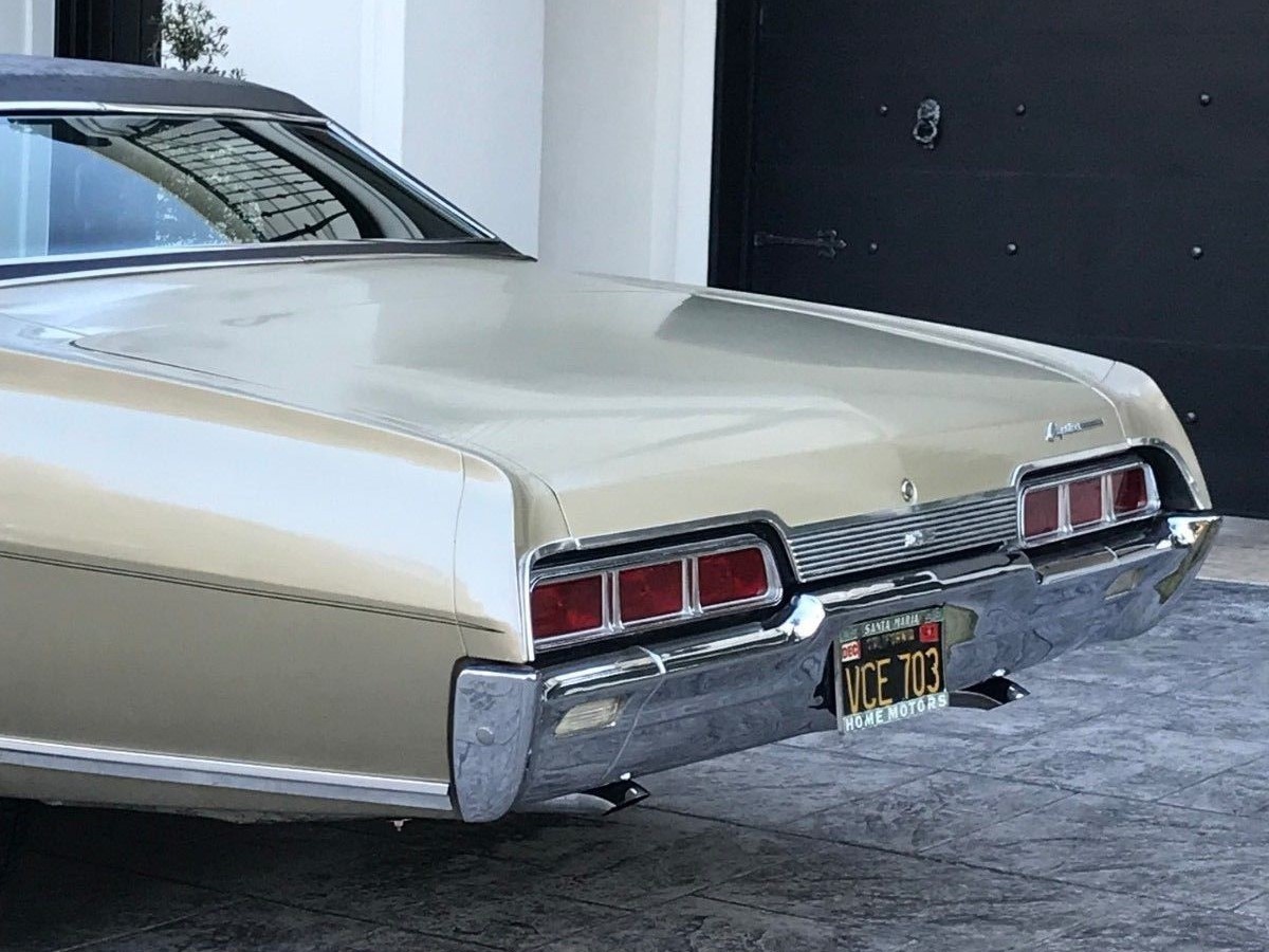 The car is finished in what appears to be the original Sierra Fawn with a black vinyl roof. The Caprice has new tires that are sporting original style hubcaps for a lower line 1967 Chevrolet instead of the Caprice wheel covers. I know I will get some haters, but if I bought it I would have to get the Caprice wheel covers back and add rear factory fender skirts. The car has had a complete brake job done. You won’t find any rust anywhere on this car.