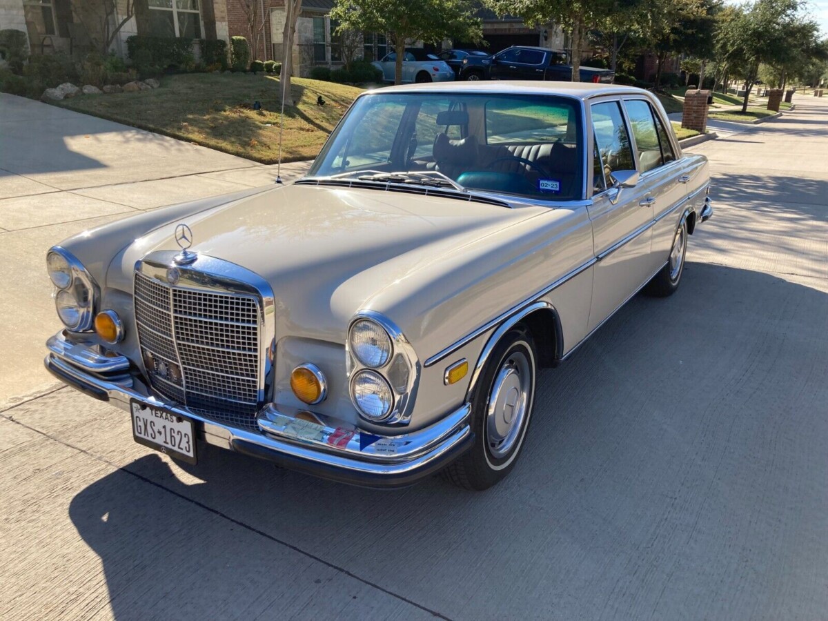 Here on eBay is a well-bred sedan: a 1970 Mercedes-Benz 280SE, bid to $7600 with the reserve met. This car is located in Dallas, Texas. Not only is this Benz a worthy example, but the seller has also posted an excellent ad. This is the W108 platform, produced from 1965 to the early 1970s. These cars were four-door sedans, not to be mistaken for the W111 two-door fintail coupe. The seller bought the car in 2016 and believes he is the fourth owner. The sale includes the original invoice from Van Winkle Motor Company in Texas, receipts from 2014 on, and stories of previous owners – a bit of what those fancy auction houses call “provenance”. The car has seen various body repairs and one repaint in the original Light Beige; while a few of the repairs did address spots of rust, the seller is careful to note he is not declaring the car rust-free. The trunk lid sits a hair high; other gaps are good.